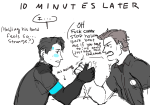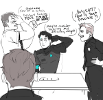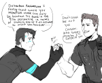 IDK I had this headcanon but it was for young Hank and Connor bc normal Hank is nowhere near the amount of fool needed to ask Connor to break his arm. Thank you for @kukumomoart for letting me use her young hank and Connor designs because THEY’RE REALLY CUTE AHHHHHHhh.