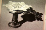 Pic 6: The snowflakes were then filmed one frame at a time – stop-motion style – as they spun on their gears, ‘descending’ down the wire guide tracks.