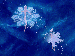 Pics 7-9: The film footage of the snowflakes was then ‘burned’ over the multiplane background, where it was matched with the 2D animated fairies.